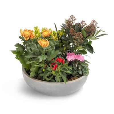 Elegancka kompozycja w jesiennym stylu,w skład której wchodzą wrzos, cyklamen i mini papryczki oraz zielone dodatki. Ta kompozycja to dobry wybór na oryginalny prezent.Zostanie ułożona przez lokalną kwiaciarnię, możesz do niej dołączyć bilecik z życzeniami.
